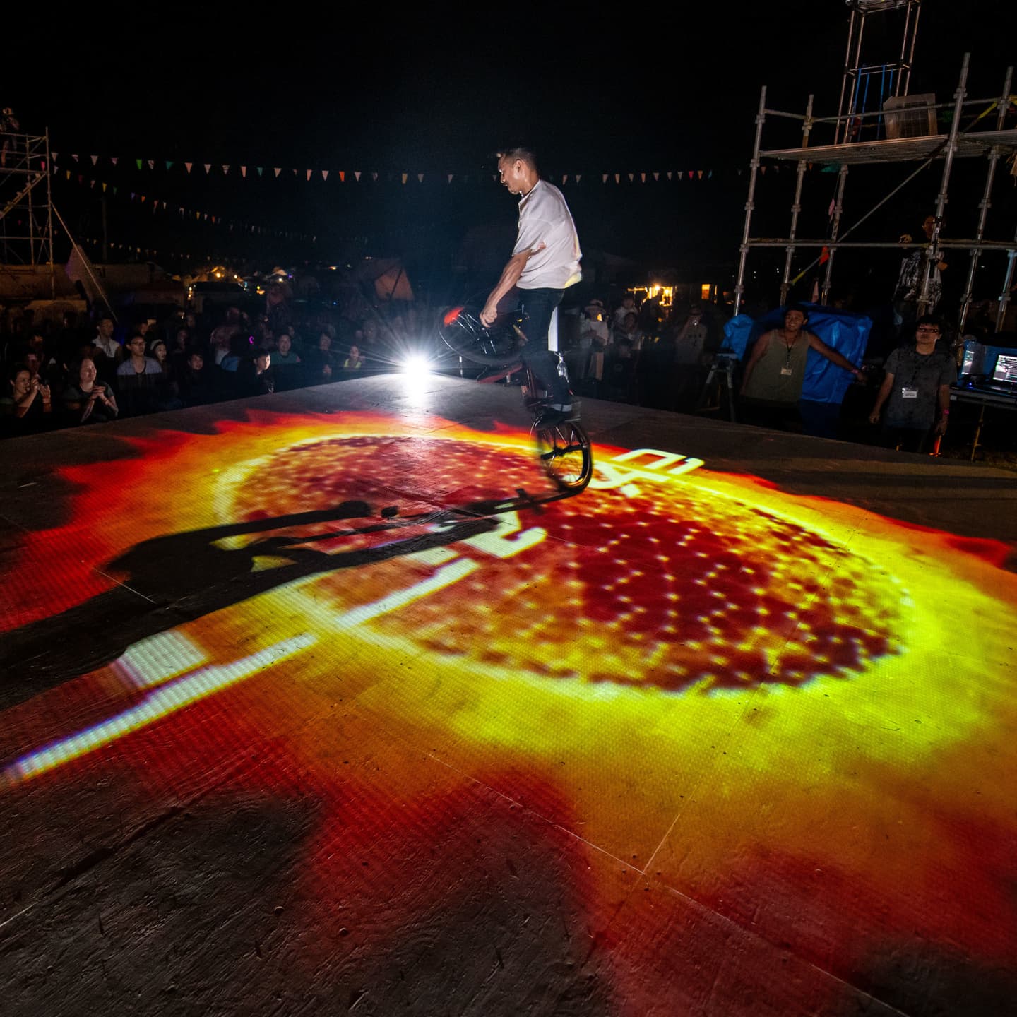 ストリートの地面100メートルに投射する映像の技術をご覧ください