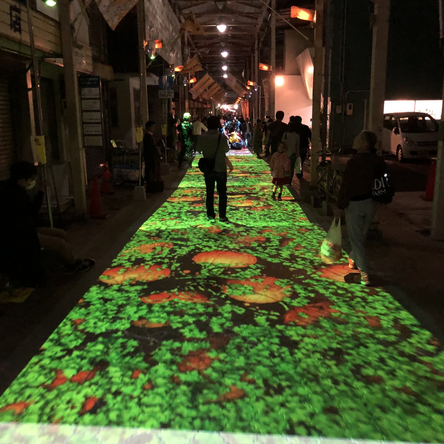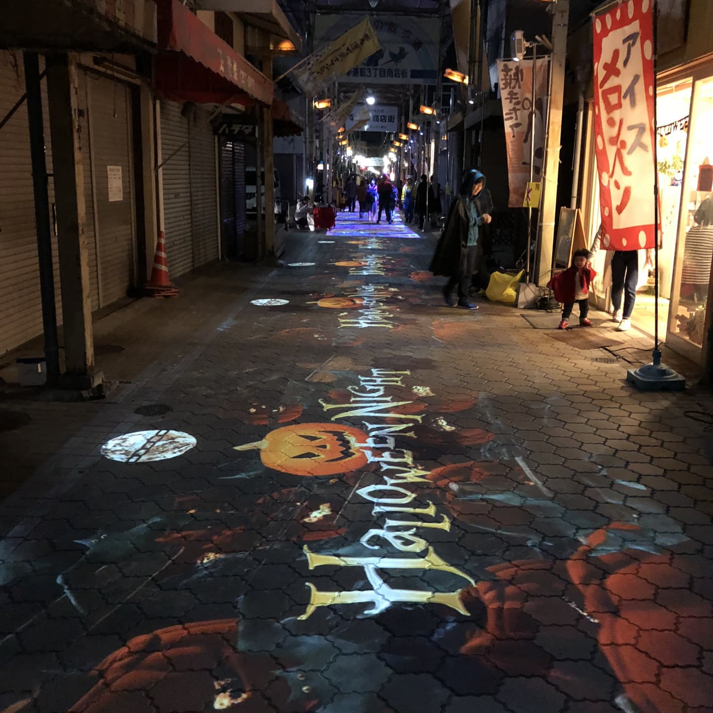 ハロウィンで子供たちの描いた絵がストリートでマッピングに!